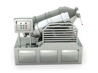 二維運動混合機特點:本機混合筒在轉動的同時又參與擺動,使筒中物料得以充分混合。混合筒的出料口偏離混合筒圓筒部分的中心線,使該機具有混合迅速、混合量大、出料便捷等特點。