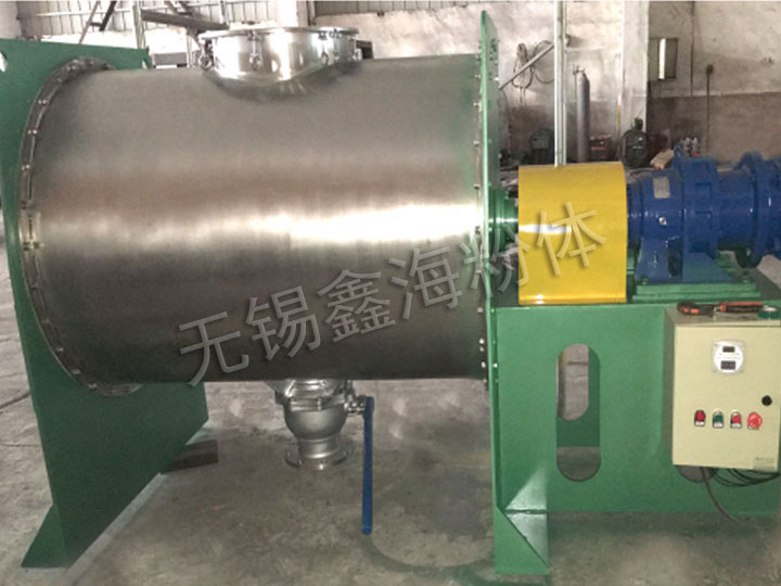 犁刀混合機,由主軸減速機帶動犁刀組軸運動,一部分將物料沿筒體圓周作徑向運動,同時將物料沿犁刀兩側的法線方向拋出,另一部分被拋出物料經飛刀組時,被高速旋轉的飛刀剪切攪拌而強烈也適合粘狀、稠狀、塊狀固—固(粉體與粉體)、固—漿(粉體與膠漿液)的物料或密度差異較大的物料也能混合。